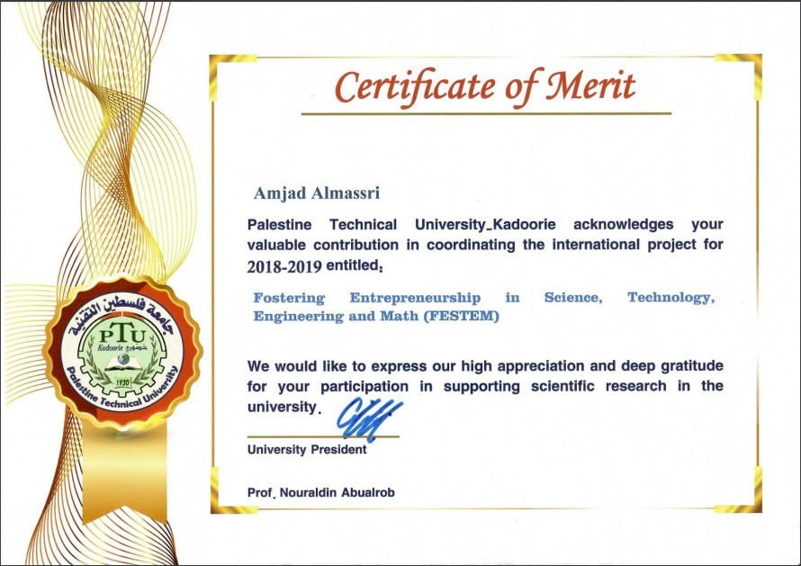 Certificate of Merit, Fostering Entrepreneurship in STEM, PTUK.
